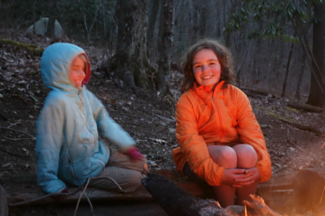 We met another hiking family. Cartwheel trades stories by the campfire with their youngest. Mouse stumbles upon a geocache hidden in a tree at our lunch spot.