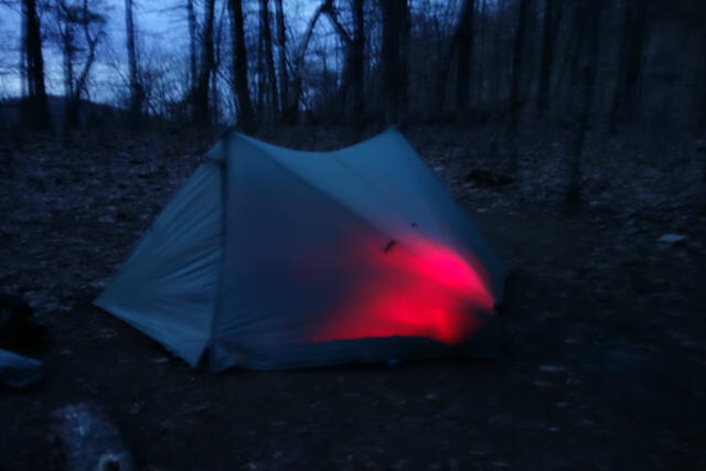 The afternoon brought some spectacular Smokey Mountain views (including this one from Charlie’s Bunion), and a rare opportunity to tent along the trail (in GSMNP there are designated camping sites and designated shelter sites; you can’t camp anywhere else, and you can’t tent at a shelter site; it’s mostly shelter sites that are near the AT, but if the Shelters are full, the regulations permit thru-hikers to tent nearby).