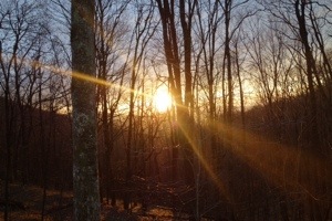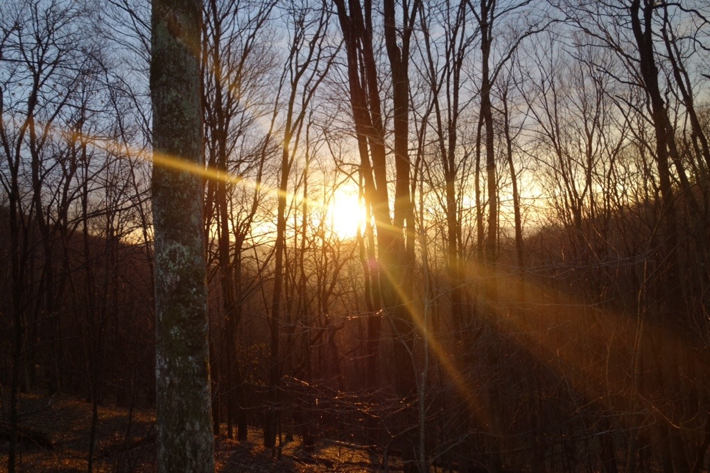 We set up a solitary camp just south of Max Patch (a grassy bald), and we’re treated to a delightful double sunset as the rain cleared. The sky glowed red as the sun sunk below the high cloud level into clear sky in a sort of inverted sunrise, and then lit up again as it sank below the real horizon.