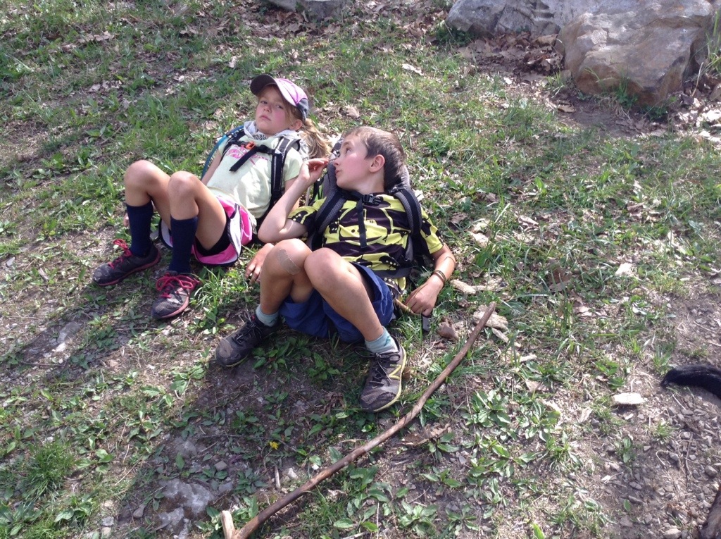 We returned well fed and ready to head on. The afternoon was warm (overly so). The sun made us all a little lethargic and the kids expressed their skepticism of pushing on despite the heat. Cartwheel caught an inadvertent trekking pole to the mouth, and RobinHood inspected the damage (Mama Bear offered sympathy and All In reached for the camera). As the sun sank lower in the sky we were treated to a cool afternoon breeze and an ice-cold spring gurgling out of the mountain side.