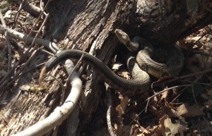 Midweek with uncle Avery, and while there were no more pony sightings, today brought quite a bit of fascinating fauna. The day was hot, somewhere in the eighties, and this led to our first introduction to the timber rattler. It was fortuitous that we had recently learned so much about snakes from Wrong Way, as we knew that the timber rattler, while highly venomous, is quite a mild mannered snake (as compared with the copperhead, which–while much less venomous–is much more aggressive).