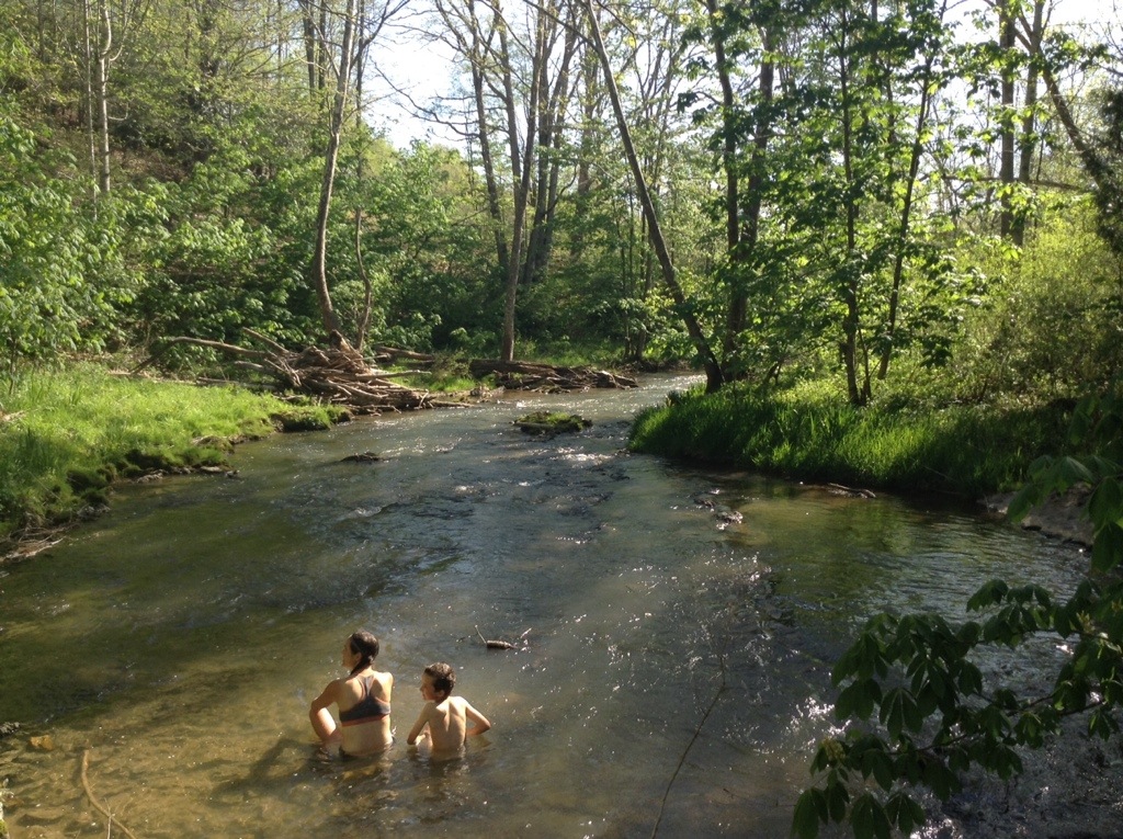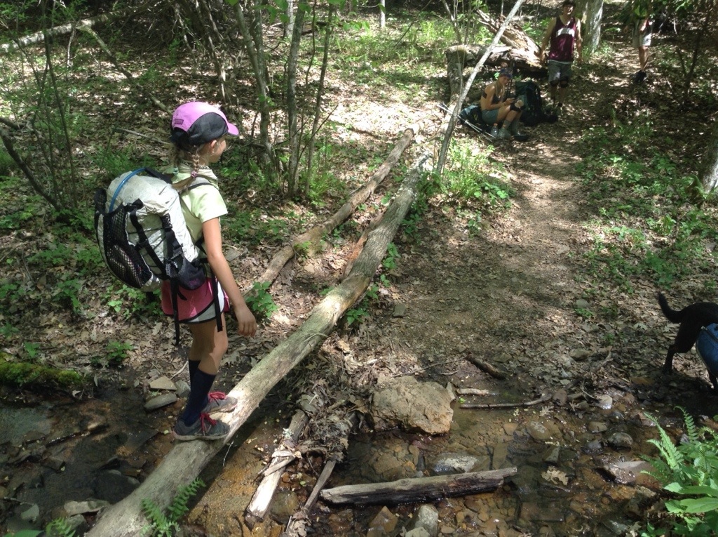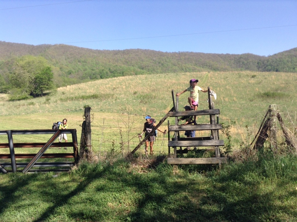We spent much of the hot afternoon traversing scenic cattle fields with mountainous backdrops (but little shade). We watched with amusement as the cows cooled themselves in mud wallows, and watched with less amusement as Orion scented himself with cow patties. We took a welcome break from the heat to have a dip in the North Branch of the Holston river, then made our way back into the woods to camp for the night.