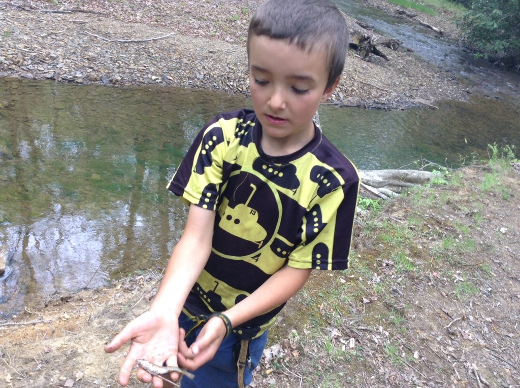 The morning brought a sorrowful farewell to uncle Avery and Christina. A rainstorm coupled with their recent departure brought on some homesickness. Together with a willful refusal to actually don rain gear, we hit a morning low. The lightening of the drizzle, and a few stream and waterfall stops to fish, and spirits were restored.