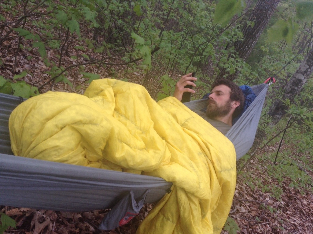 By the afternoon, we were thankful for the overcast skies as there was little water on the ridges and an advisory recommended against drinking from the stream at the road crossing due to construction contamination. We enjoyed lazy evening reading in the hammock and an early night.