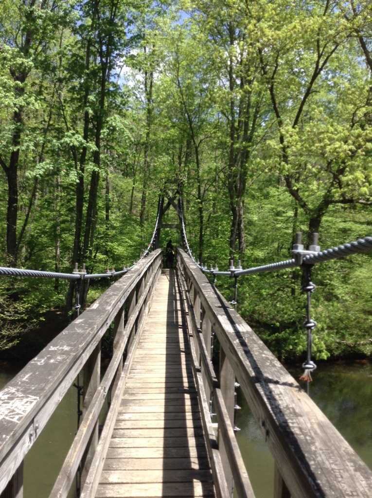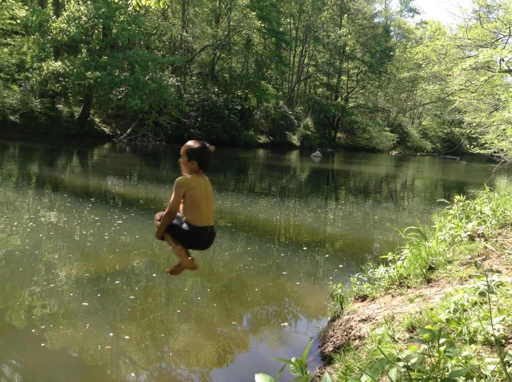 The day brought a dramatic pedestrian suspension bridge, and as the mercury rose we decided to take the hot part of the day off from hiking. A small store, half a mile road walk off the trail, provided welcome burgers and milkshakes, then back to the river for some swimming (and canon balling), before we climbed the next ridge.