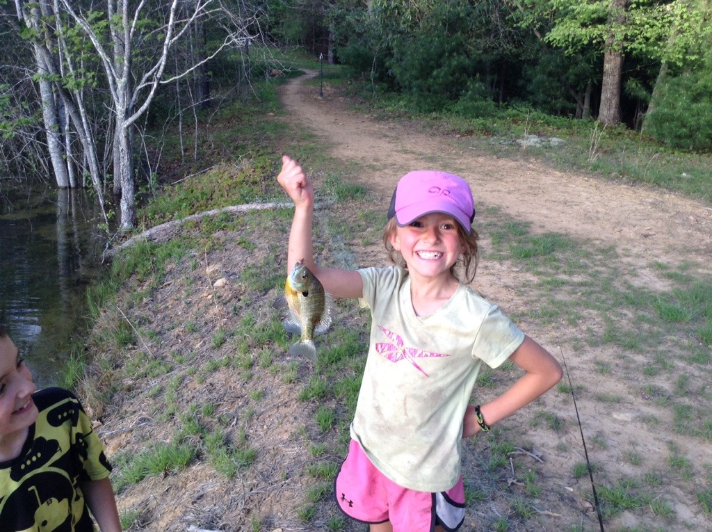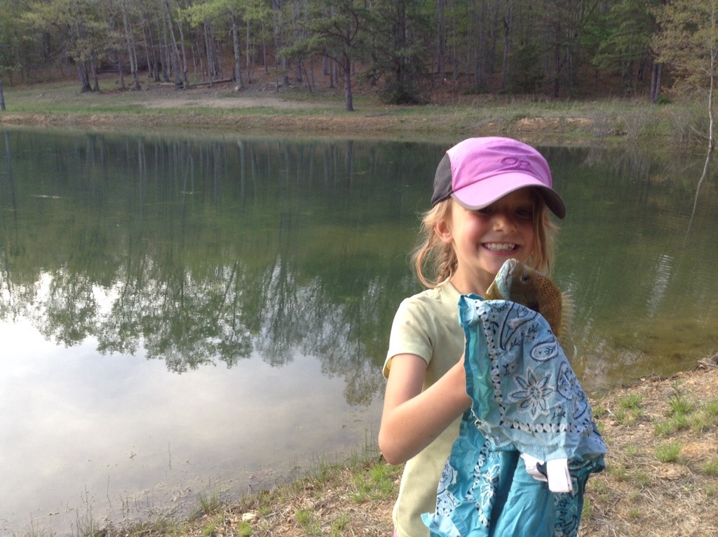 The parents began to set up camp while the kids broke out the fishing pole. This led to a fishing frenzy, in which I actually lost count of the number of fish that they pulled in, it was certainly in the double digits. Robin Hood hooked a sunfish, then a bass, then gave Cartwheel some casting instruction. She had a large sunfish strike at her first cast, and her face displayed pure joy as she pulled it in and showed it off (she would catch another one a few minutes later). The kids must have pulled in fifteen to twenty sunfish (thank goodness for the barbless hooks, which dramatically aid the ease of catch-and-release). I had to stop taking pictures so that I could actually set up the tent, but body size suggested at least seven or eight unique fish were fighting for the Royal Wulff every time it hit the water.