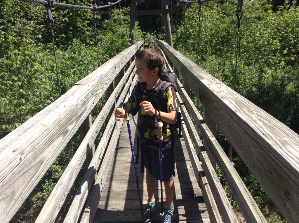 One of the MoFo group had won a set of kid’s hiking poles in a TrailDays raffle, and when we got to the road crossing where their truck was parked, he gifted them to RobinHood, who was quite excited (Cartwheel continues to hike with the stick painted like a pink rhinoceros that she was given at the WoodsHole hostel). As I was sitting here writing this this morning, we ran into the MoFo group again, who gifted us a fuel canister–the one item we were unable to procure in last night’s resupply due to the late hour–so we are doubly grateful to them.