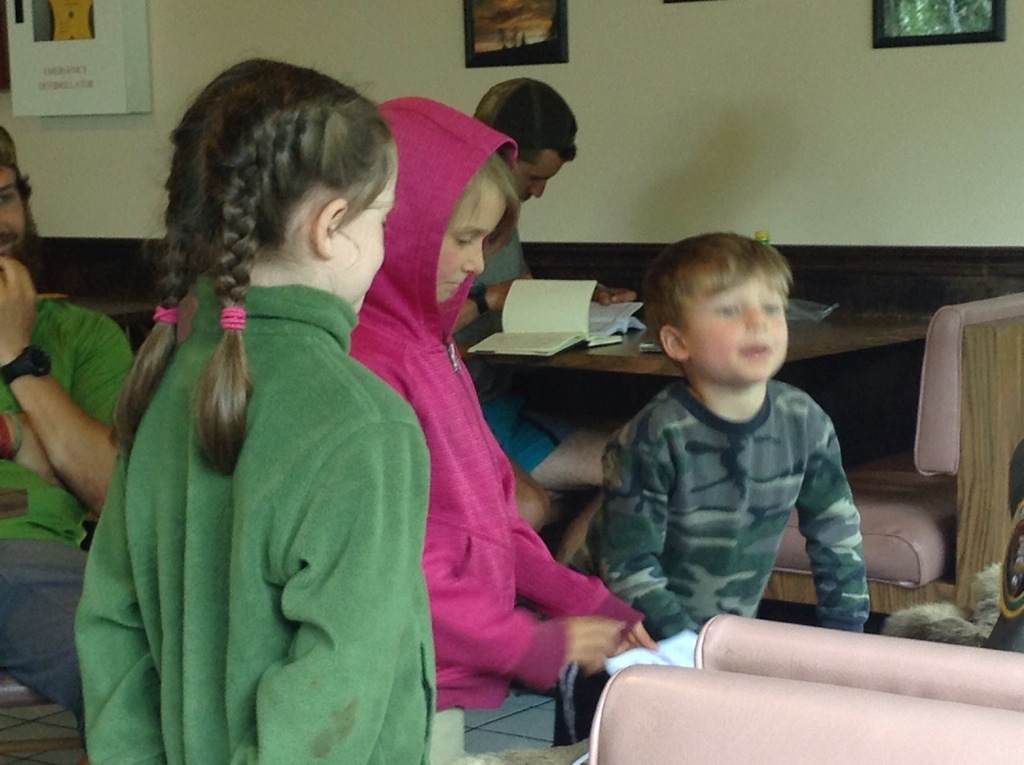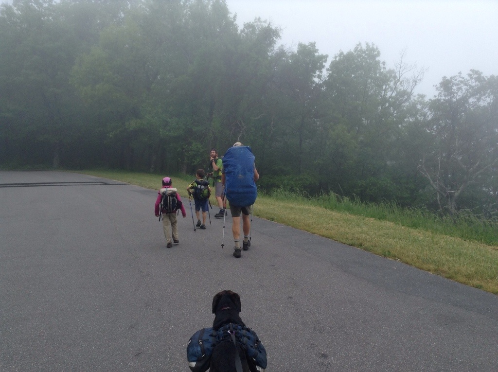 Although the car noise and frequent road crossings do remove some of the wilderness feeling, it’s hard not to appreciate the trail side camp stores and restaurants that provide almost daily opportunities for burgers and ice cream. RobinHood saw an eight point buck and Cartwheel and All In watched a bear lumber across skyline drive in the early morning mist. We ate a the local wayside, the kids met some new friends from another hiking family with whom we will meet up further down the trail, and they all listened to a park service presentation on deer in the park.