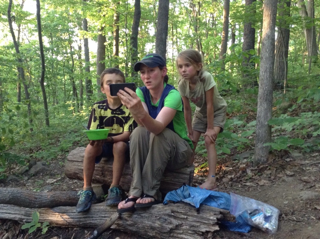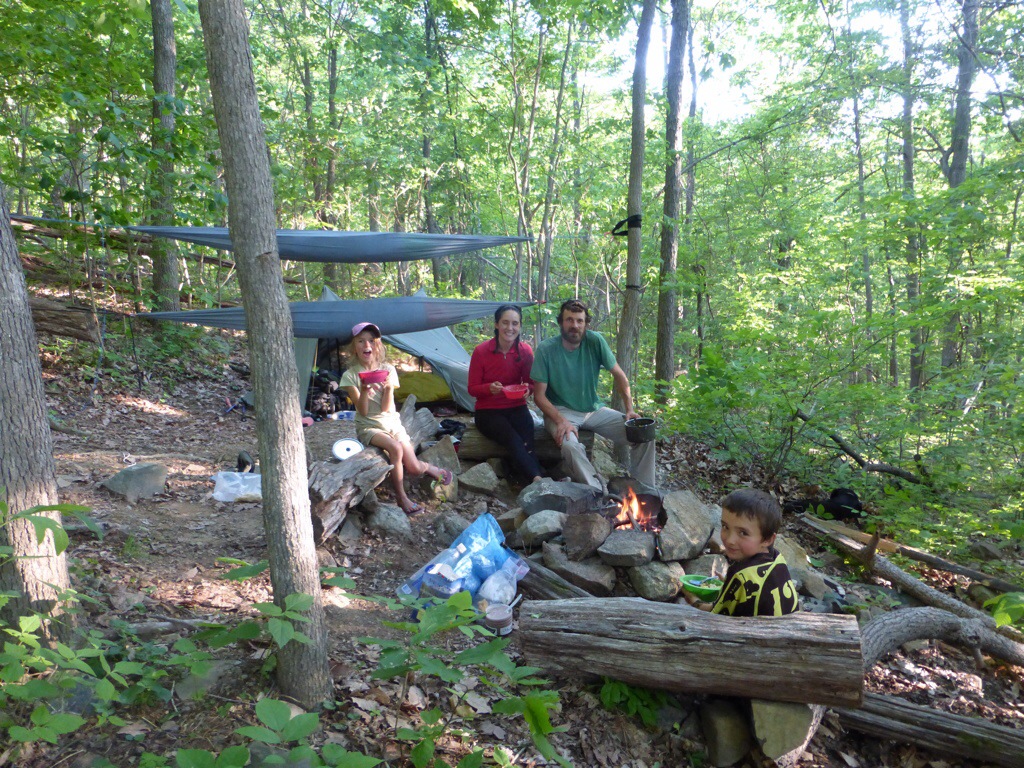 The campsite was on a very steep hill with a very cool spring in a boulder field that had a truly remarkable flow rate. The kids hung out with Wired (who is truly wired on the trail), and even had a fireside Skype with her sister and two nephews.