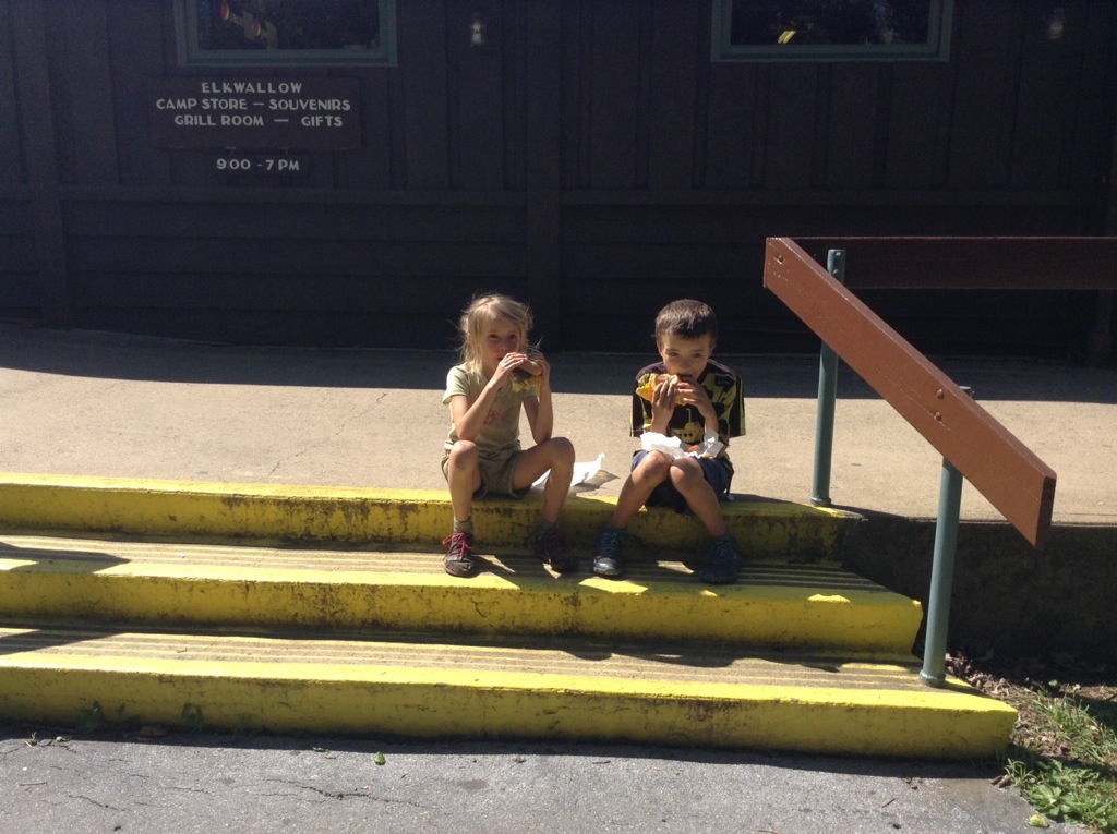 This made the park feel like a kind of constant reunion. We are surrounded by a really fun group, and spending time together in the evenings (and at the trailside stores and restaurants) has been great fun. Last night’s camp spot was in a grassy area, and that led to ticks crawling out of our backpacks (which we store on the ground in our tent’s vestibule, outside the bug protection) all day long.