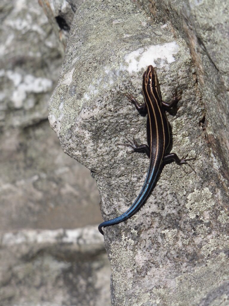 Your blue tailed lizards are five lined skinks: http://www.fcps.edu/islandcreekes/ecology/five-lined_skink.htm