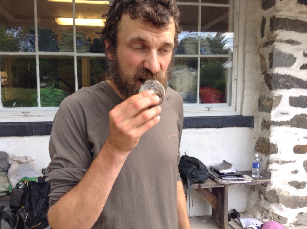 It was all very exciting. We had our pictures taken for the thru-hikers book, and leafed through the old books, looking at our photos from 2002 and finding pictures of the families from that year that inspired this adventure. Baltimore Jack (a serial thru-hiker, though not hiking this year) was also there, and we enjoyed seeing his picture in the 2002 book on his way north. We put off opening most of the packages until Saturday, but we were treated to a bag of honest to goodness Pemmican made by my friend Mr. Anthony and left for us when he was down this way a couple of weeks ago. Everyone but Momma Bear tried some, and we’re all glad that it is not our sole source of protein on this trip.