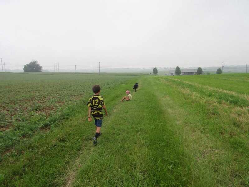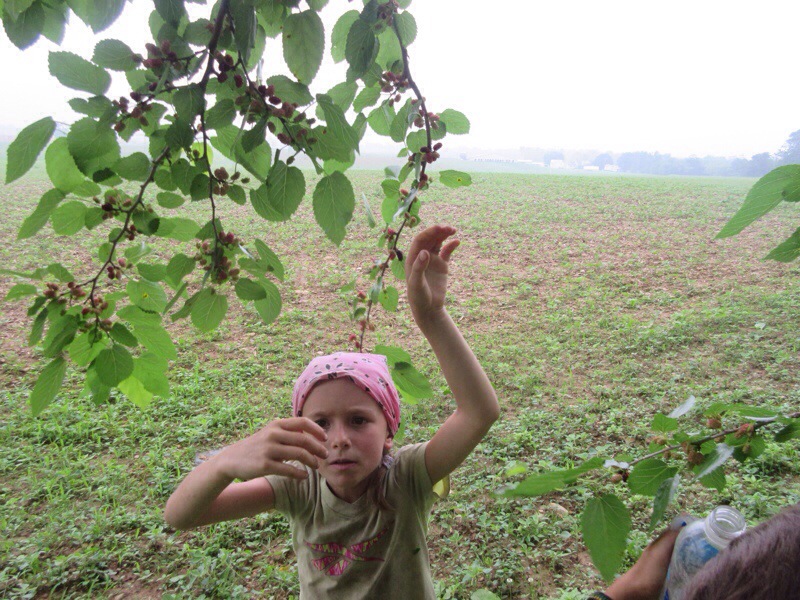 The boulders were fun to navigate, particularly for the kids because the adults were carrying their packs to facilitate a speedy trip into town. Then we dropped down to walk through some fields of young wheat and corn. The kids were excited to discover some sour cherry trees and mulberry trees growing at the margins of the field. The mulberry tree was especially exciting since they had been singing “pop goes the weasel” all the way down the hill.