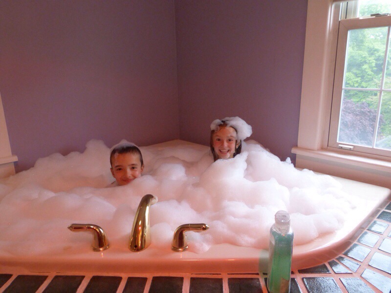Cartwheel certainly looks a lot happier in the bubble bath than in the mud!