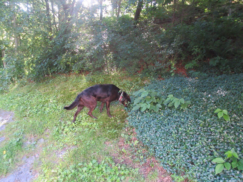 With about two miles to go, Orion suddenly stopped using one of his hind legs. He seemed otherwise in good spirits, and an examination of his foot and pad didn’t indicate any tear, nor did he seem sensitive to pressure against his foot. All In took Orion’s pack (returning RobinHood’s), and we continued on toward town. Orion would use four paws intermittently, but would also frequently trot along on three legs. Two years ago had suddenly gone lame in his other hind leg, and was diagnosed with Lyme disease, so we looked up the nearest veterinarian and mad an appointment for the following day.