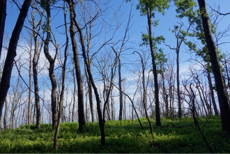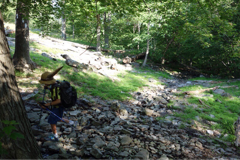 We woke up to a scenic vista with many of the weekend hikers clearing out before seven. The kids enjoyed their first night under their new hammock tarp. We headed out with the kids tagging along behind Spider-Man, a physical-therapist and hobby apiarist. The conversation was endless. We soon were caught from behind by Yeti and Smurfin’ who were being slack-packed themselves by Yeti’s husband Dan. We did well to keep up with them and were greeted at the first road-crossing by Dan and a pickup truck full of food. RobinHood made himself a turkey sandwich that included lettuce, tomato, apple, strawberries, and cheddar Pringles; everyone was impressed by his culinary creativity.