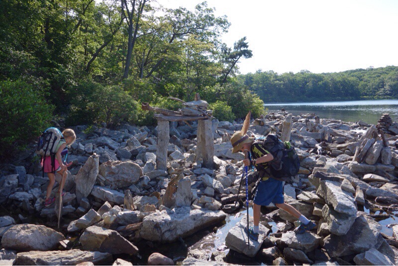 Enjoyed your picture of the ‘stone-statue beach’ as our kids dubbed it. Remembered a good swim in the lake (leaches as I recall). We stayed at the Church of the Mountain Hiker Hostel in Delaware Water Gap – the kids played checkers. What great memories!