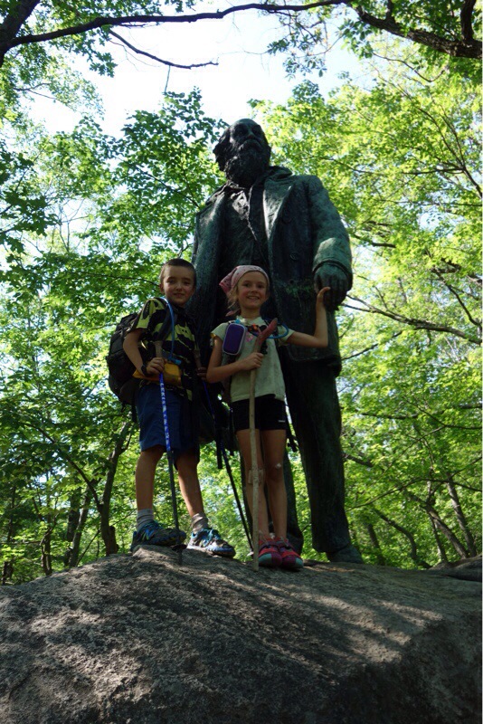 We cruised the Bear Mountain Zoo, and (afoot and lighthearted) took some photos with the statue of Walt Whitman. Then we crossed the Hudson on the Bear Mountain Bridge (also the lowest elevation of the AT).