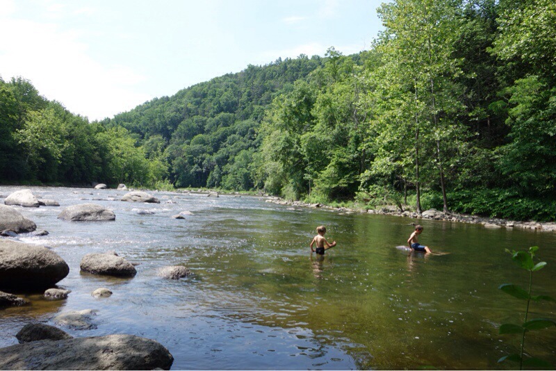 But today we got to share the home of some of the Busby clan in Connecticut and we felt almost civilized. We spent the morning swimming in the Hoosatonic, and pumping water at the shelters. But we were at the Busby house in time to enjoy some soccer on television and were treated to a delicious home cooked meal.
