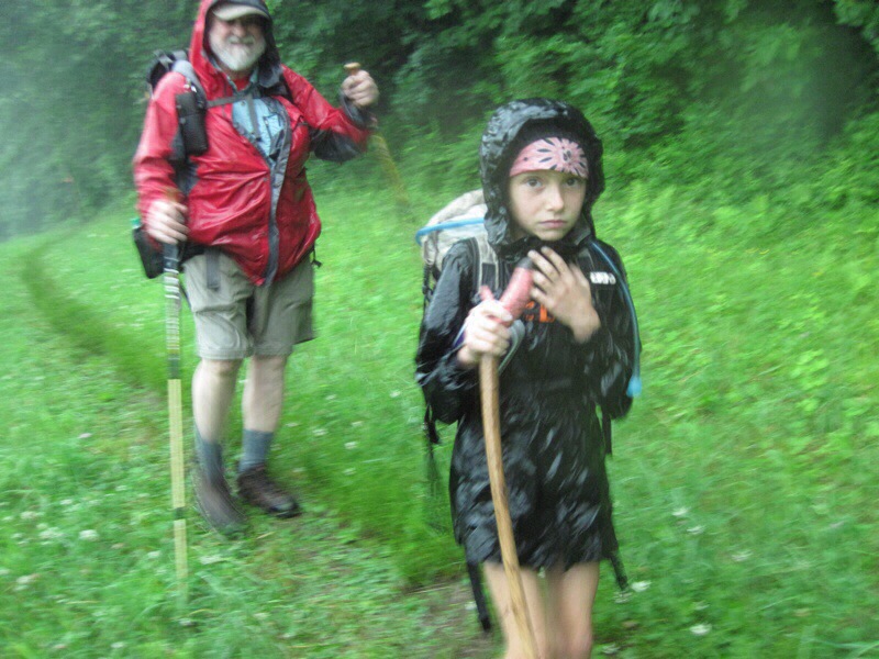 We said goodbye to the Busbys and were dropped back off at the trail. We hiked several miles in the morning, then met up with my dad who came to hike with his grand kids for a few days. He joined us for our entry into Massachusetts, but he also managed to pick the day of one of the most torrential rains we’ve had to date.