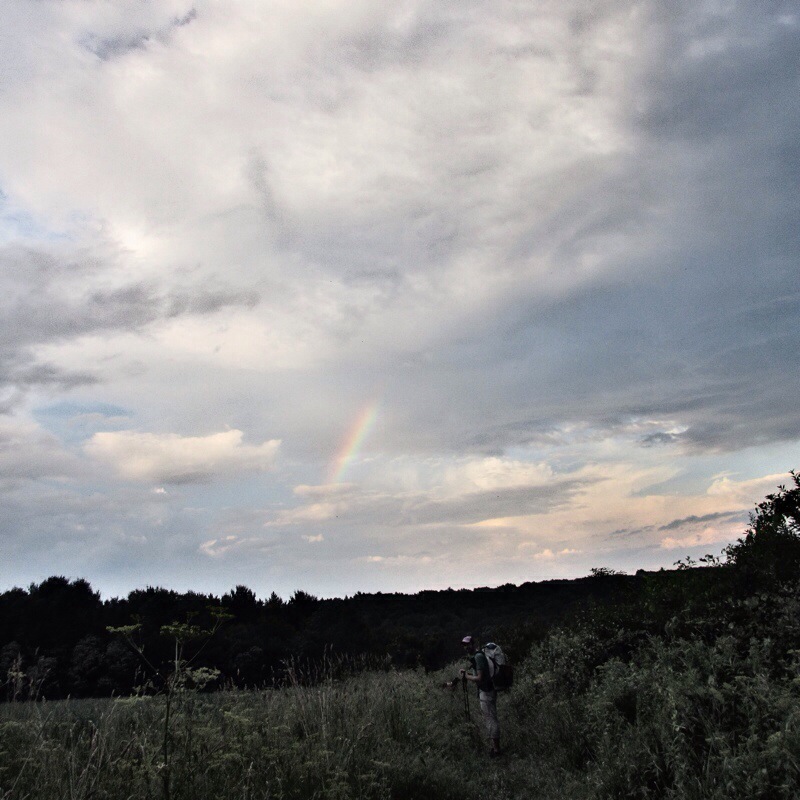 After a long drive (with few pictures) we made it back on the trail. Mama Bear and the kids watched Frozen in the back seat and we listened to many hours of Eragon. Then, with much appreciated help from Peggy, we made it back to the trailhead in time to catch an evening rainbow.