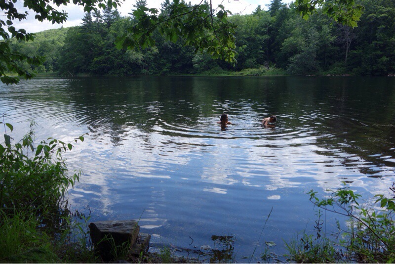 We soon crossed over the Mass Pike where the kids enjoyed getting the long haul truckers to blow their horns. Then we hiked passed some scenic wetlands and found a small clearing in which to squeeze ourselves for the night. The thunder and drizzle is suggesting another wet night. We’re all excited for tomorrow when we’ll see some old friends (and a very very new one).
