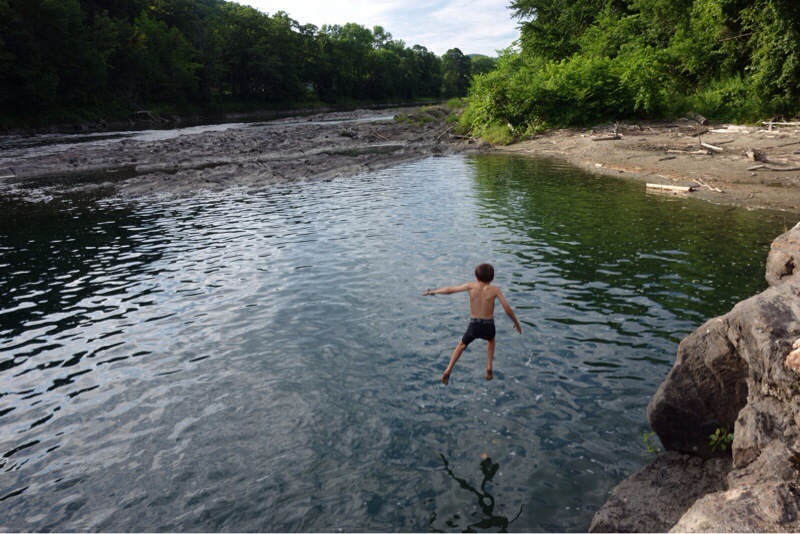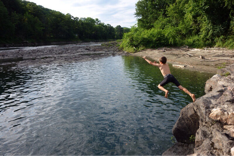 The late afternoon brought a walk through town with some bridge-jumping and swimming in the river. Then back to the woods for a quite place to sleep.