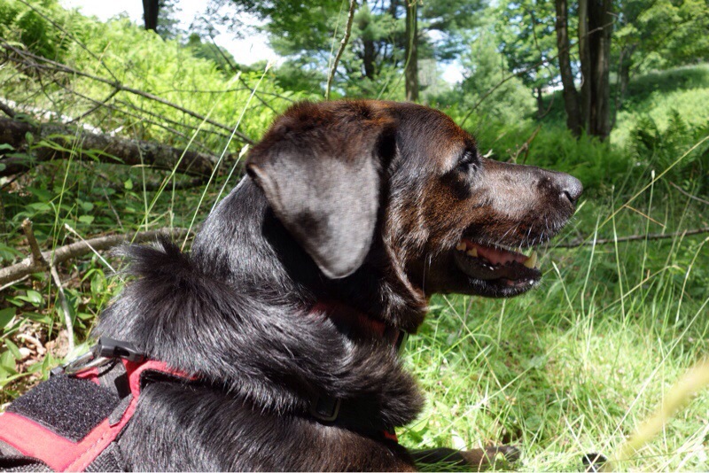 We learned about mushrooms and picked some chanterelles for dinner. We gorged on ripe raspberries and listed to the ethereal call of the hermit thrush (like crystal shattering in the distance). We had lunch (playing with our food of course), and Alison hiked with us in the afternoon. Eventually she turned around and we continued north.