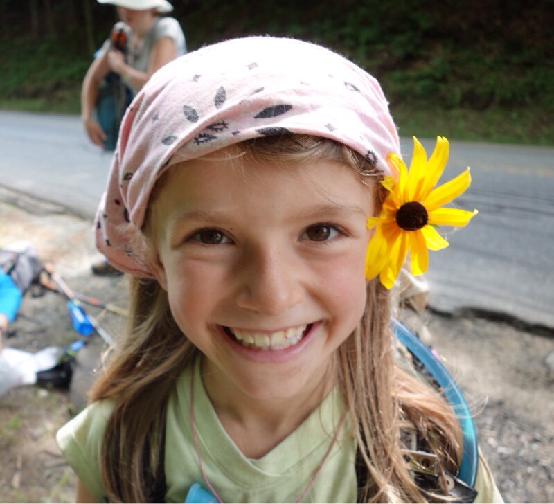 What a great photo of cartwheel with the flower in her hair. Her smile says it all!