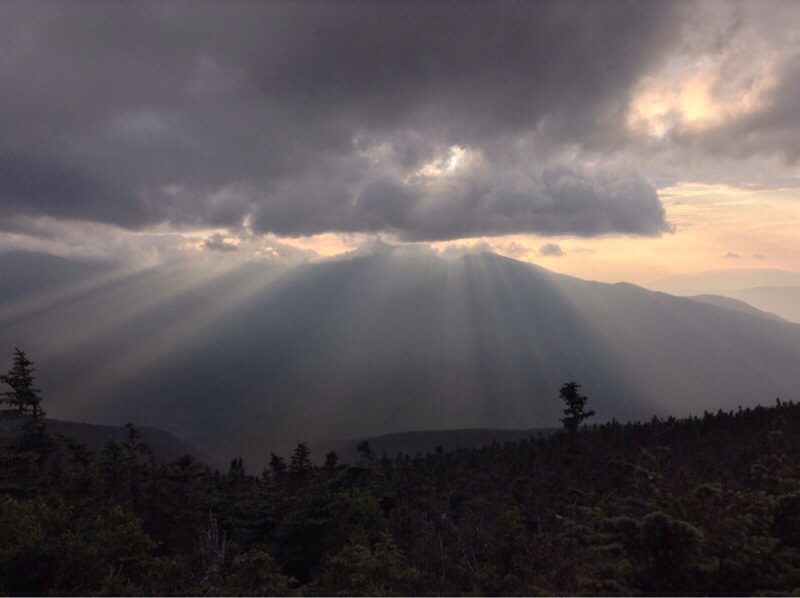 Sometimes the awe and beauty of the mountains can stop you in your tracks, erase all from your mind that is not present in that moment, and focus you on the here-and-now in a way not readily achieved in our daily lives. Like the runner’s high achieved by the long distance runner, it is a euphoric trance that centers you in the moment and in the world. It is the restorative power of wilderness and the reason so many work so hard to protect such wilderness experiences. In the early evening hours, as we crested Carter’s Dome, we were treated to a divine display of sun and clouds as the realm of the Appalachian Trail and surrounding mountains stretched out before us. This is why we hike.