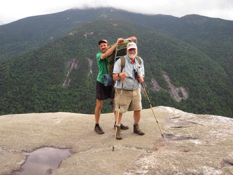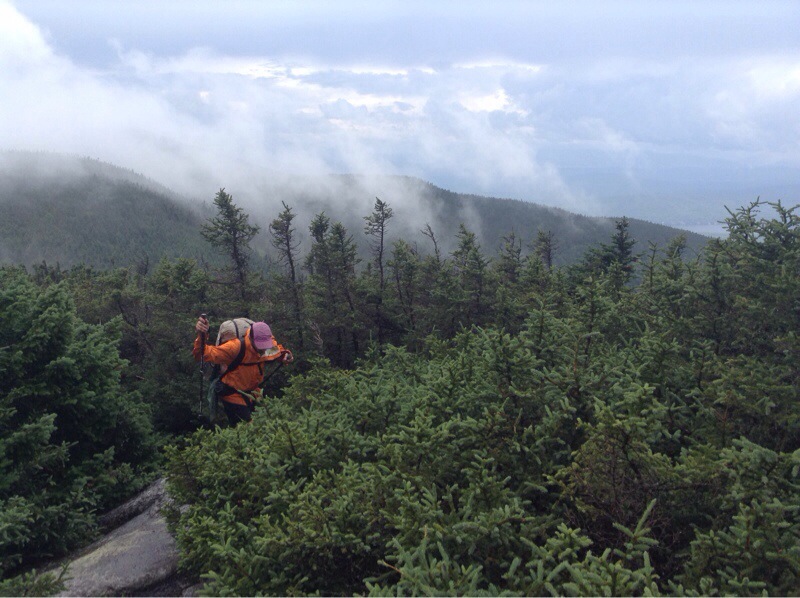 We climbed out of the notch and over Old Speck, the sky unable to make up its mind between burst of sunshine punctuated by hail and spitting rain. Grandpa Pete met us in Grafton Notch to hike with us the north side of the notch past Table Rock and up the Baldpates. My first trip on the Appalachian Trail was riding up to Table Rock at four months of age, sitting in the top pocket of Grandpa Pete’s army green Kelty external farm pack, grasping the top rung of the frame with my tiny hands. Grandpa Pete brought that same pack with him this time around. While I could still grasp the handle bar of the frame, no longer can I fit comfortably in the small pocket between his shoulder blades.