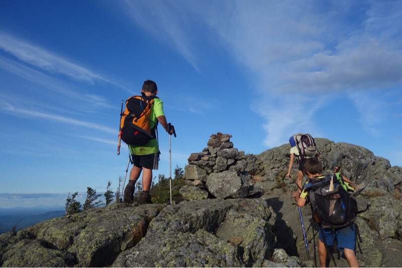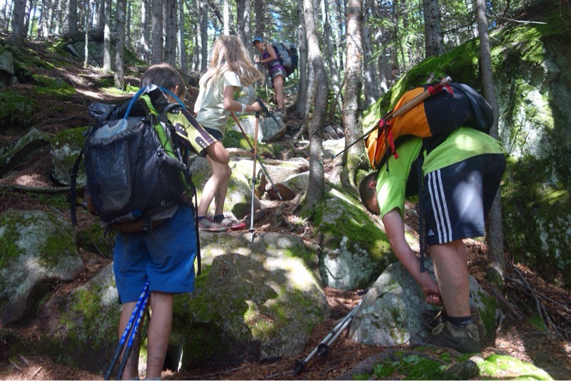 We woke up in Crocker Cirque, took a quick peak to see if there was a moose in the pond, then headed up for the Crocker traverse. We needed a few things in Stratton, so Cartwheel and All In cruised on ahead to hitch in for resupply while Mama. Bear and the boys went at a more leisurely pace. The front runners cruised passed some northbounders who had passed us on the way up but that we otherwise hadn’t met before (they’re always a little dumbfounded at an eight year old can move fast enough to pass them), then popped out of the woods in time to see Pockets and Chance climbing out of a pickup truck.
