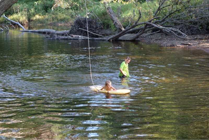 After a scenic morning of about ten miles over the Barren-Chairback ridge, Grandpa Pete and Grandma Linda met us at the road and we headed back to our campsite along the water, complete with rope swing. The kids found new uses for their sleeping pads and spent lots of time in the water. Grandpa Pete spent some time unsuccessfully trying to find fish.