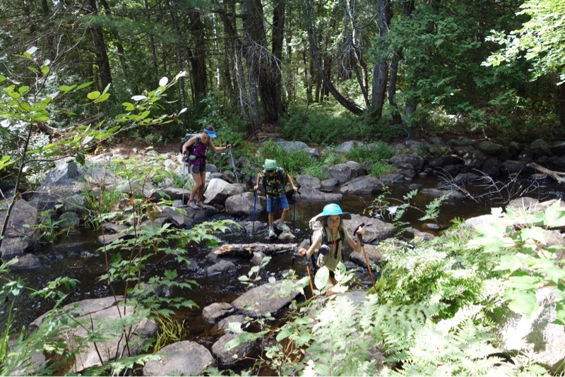 Walking with Wired back in the Shenandoahs, the kids made a twenty-seven mile day. Here in Maine, the timing and the terrain would give them one last shot, and they were determined to try. They woke up early and packed up all their stuff and after breakfast we hit the trail by 6:15 (we were later informed the Cartwheel woke up every hour to ask the time of RobinHood, the keeper of the watch). Breaking only to swim (several times) and to eat (several more times), the kids cruised consistently, and by 6:45 that night we were setting up camp 30.3 miles from where we had started the day.